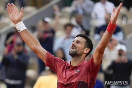 [서울=뉴시스] 김희준 기자 = 남자 테니스 세계랭킹 1위 노박 조코비치(세르비아)가 혈투 끝에 프랑스오픈 8강에 진출하면서 메이저대회 통산 최다승 신기록을 세웠다.