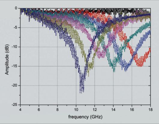 이티엘 스텔스 도료의 레이더 흡수 비율 그래프. 〈자료 이티엘〉