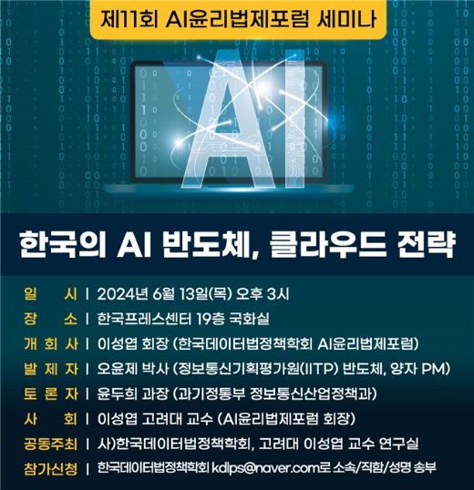 제11회 AI 윤리법제 포럼 세미나 개최…'한국의 AI 반도체, 클라우드 전략'