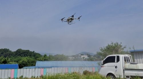 (청주=연합뉴스) 박재천 기자 = 청주시는 5일 아프리카돼지열병(ASF) 유입 차단을 위해 소독용 드론(4대)을 활용해 양돈농장 56곳 주변에 야생동물 기피제를 살포했다.