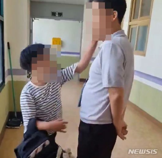 [전주=뉴시스] 윤난슬 기자 = 전북 전주의 한 초등학교에서 3학년 학생이 교감의 뺨을 때리는 모습. (사진=전북교사노조 제공). 2024.06.05. photo@newsis.com |
