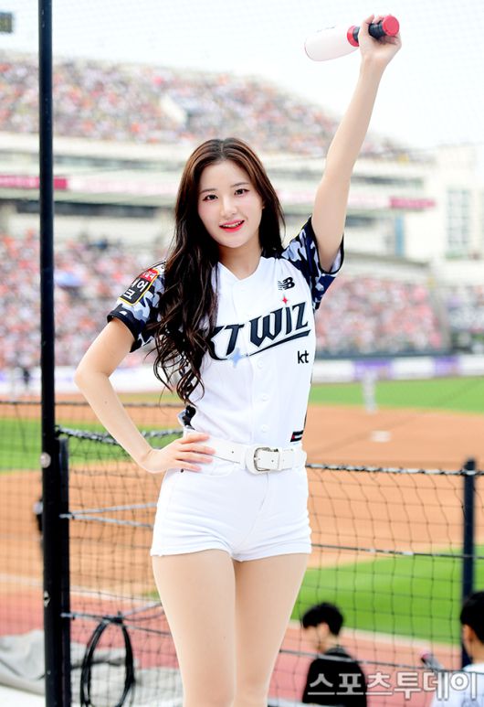 [수원=스포츠투데이 권광일 기자] 2024 신한은행 SOL Bank KBO리그 한화 이글스와 KT 위즈 경기가 6일 경기도 수원시 수원KT 위즈파크에서 열렸다. 치어리더 김해리가 신나는 응원을 선보이고 있다. 2024.06.06. [스포츠투데이 권광일 기자 sports@stoo.com]