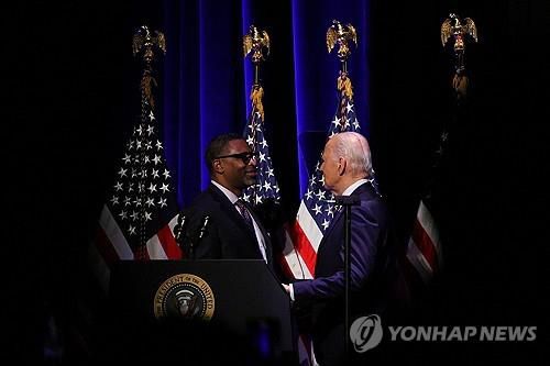 조 바이든 대통령(우) NAACP 대표 데릭 존슨의 모습 |