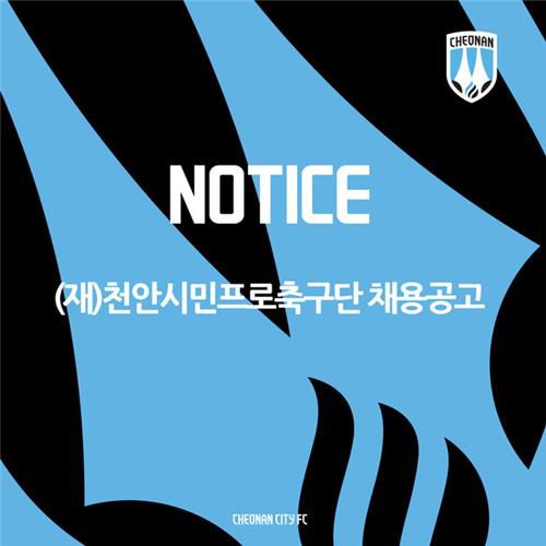 (서울=연합뉴스) 이영호 기자 = 프로축구 K리그2 천안시티FC가 홍보마케팅팀 신규 인력을 공개 채용한다고 7일 밝혔다.