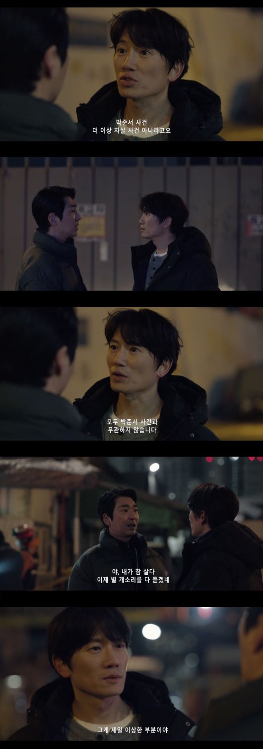 이어 유 경감은 "당신 눈에야 박준서 이명국 그리고 이 방앗간 주인까지 다 관련 있어 보이겠지. 그런데 내 눈엔 거기 항상 당신이 있었다는 게 제일 이상한 부분이야"라고 지적해 눈길을 끌었다.