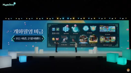 이날 쇼케이스는 유튜브 채널과 더불어 게임 내 이벤트 맵 '메이플 스퀘어'에서 동시 진행됐다. 쇼케이스 진행 중 게임 내 유저들이 즉각적으로 다양한 반응을 나타내는 것은 물론 퀴즈를 진행하는 등 보다 긴밀한 소통의 자리가 됐다.