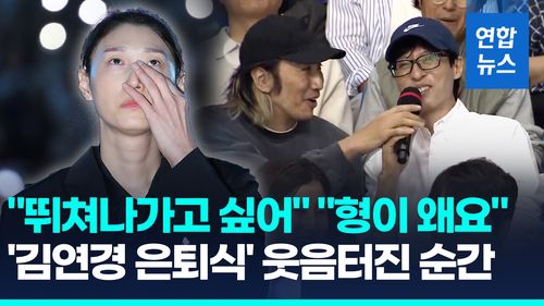 이날 은퇴식에는 김연경과 함께 대표팀 생활을 했던 선배·동료들과 6천명의 관중도 함께했는데, 방송인 유재석과 배우 이광수, 나영석 PD 등 유명인이 자리를 지켜 눈길을 끌었습니다.