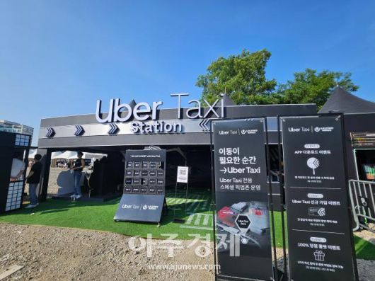 ‘2024 울트라 뮤직 페스티벌 코리아(이하 울트라 코리아)’ 행사장 내 우버 택시 안내존. [사진=장하은 기자] |