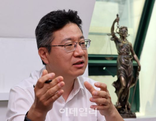 정경일 법무법인 엘앤엘 대표변호사가 서울 서초동 사무실에서 답변하고 있다. (사진=이데일리 방인권 기자) |