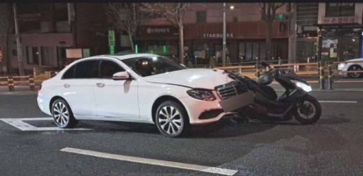 벤츠 음주운전 20대 女 ‘구속 갈림길’ - 음주운전으로 오토바이 배달원을 치어 숨지게 한 DJ예송(23·안예송)이 옥중에서 사과했다. 안씨는 지난 3일 오전 서울 강남구 논현동에서 술을 마시고 벤츠 차량을 몰다가 오토바이를 친 혐의를 받는다. 이 사고로 배달 오토바이를 몰던 50대 운전자는 심정지 상태에서 병원으로 이송됐지만 숨졌다. 사진은 사고 당시 현장 모습. 2024.2.5 뉴스1(민주노총배민라이더스지회 제공) |