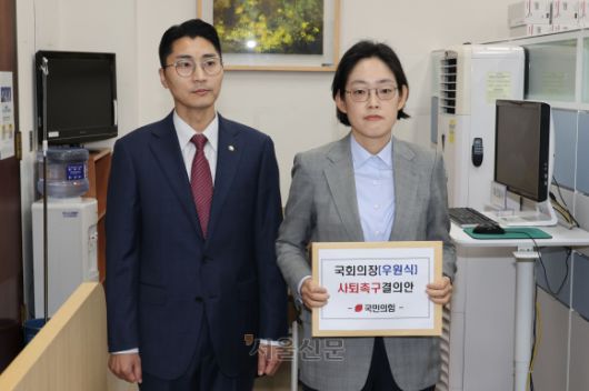 국민의힘이 11일 더불어민주당의 11개 상임위원장 단독 선출에 항의해 우원식 국회의장 사퇴 촉구 결의안을 발의했다.