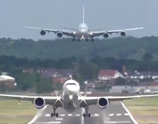 하나의 활주로에서 에어인디아 항공 여객기가 이륙하고, 동시에 인디고 항공 여객기가 착륙하면서 아슬아슬하게 충돌을 피한 것이다.