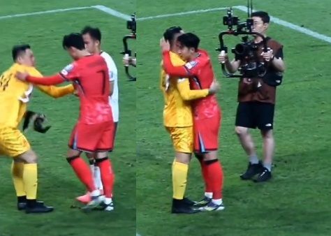 2026 북중미 월드컵 아시아 2차예선 C조 최종전에서 한국이 중국을 1-0으로 이긴 가운데 한국 축구 국가대표팀 주장 손흥민(토트넘)이 경기 패배 후 울고 있는 중국 골키퍼를 격려하는 장면이 포착돼 화제다.
