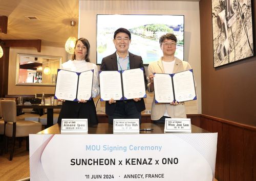 (순천=연합뉴스) 장덕종 기자 = 전남 순천시는 12일 프랑스 안시에서 프랑스 콘텐츠 기업 '오노'와 업무협약을 했다고 밝혔다.