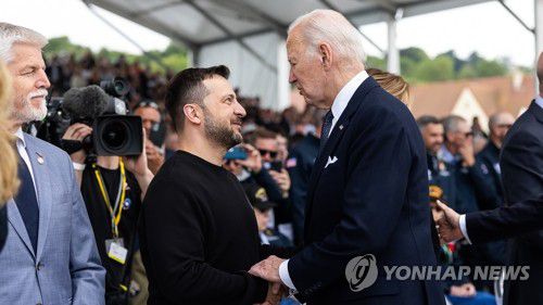 노르망디 상륙작전 기념식 참석한 미·우크라 정상 |