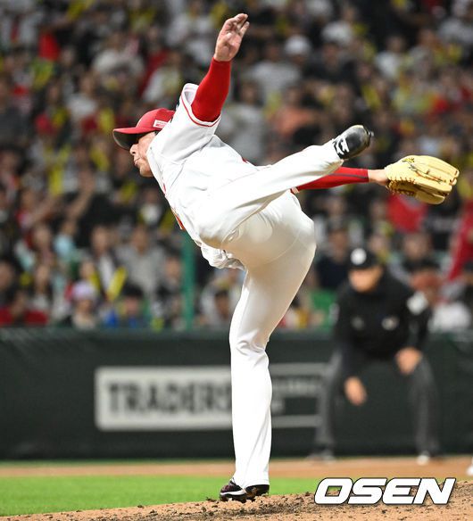 [OSEN=인천, 이대선 기자] 12일 오후 인천 SSG랜더스필드에서 ‘2024 신한 SOL Bank KBO리그’ SSG 랜더스와 KIA 타이거즈의 경기가 열렸다. SSG는 오원석, KIA는 양현종을 선발로 내세웠다. 7회초 무사에서 SSG 고효준이 역투하고 있다. 2024.06.12 /sunday@osen.co.kr