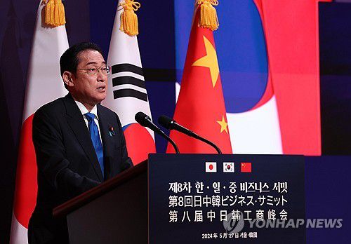한일중 비즈니스 서밋 연설하는 기시다 일본 총리 |