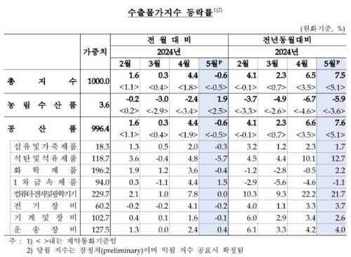 수출물가지수는 올해 1월부터 4월까지 넉 달 연속 상승하다 지난달 하락세로 전환됐다.