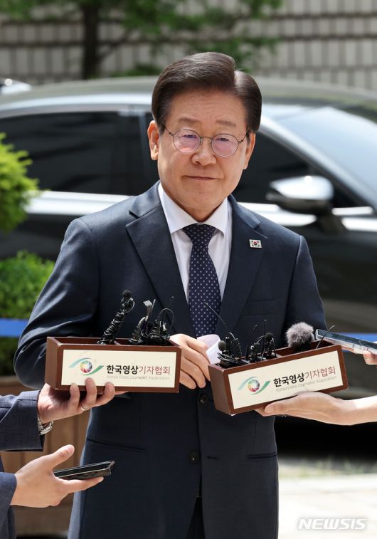 [서울=뉴시스] 김금보 기자 = 이재명 더불어민주당 대표가 14일 서울 서초구 서울중앙지방법원에서 열린 자신의 공직선거법 위반 혐의(故 김문기 성남도시개발공사 개발1처장, 백현동 부지 용도변경과 관련해 허위사실을 공표한 혐의) 24차 공판에 출석하고 있다. 2024.06.14. kgb@newsis.com