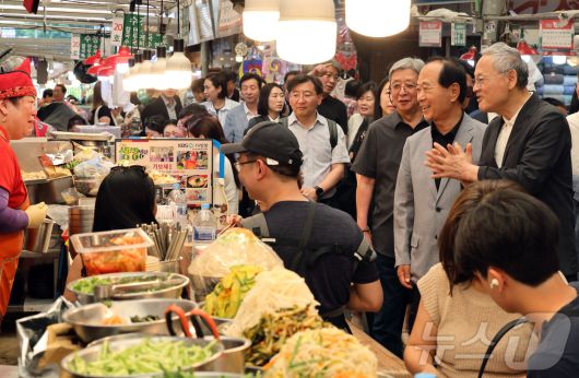 (서울=뉴스1) 김형준 기자 = 유인촌 문화체육관광부 장관이 최근 '바가지요금' 논란이 끊이지 않았던 광장시장을 찾아 상인들의 전반적인 인식 개선을 당부했다.