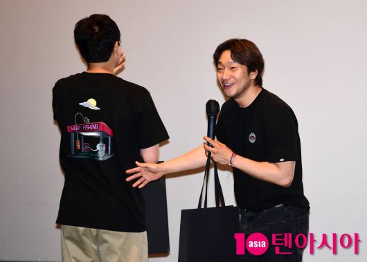 [텐아시아=조준원 기자]배우 손석구와 문병곤 감독이 14일 오후 서울 용산구 한강로 CGV 용산아이파크몰에서 열린 영화 '밤낚시' 무대인사에 참석하고 있다.