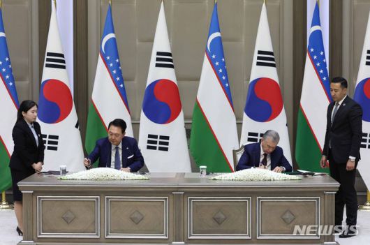 [타슈켄트(우즈베키스탄)=뉴시스] 박미영 기자 = 윤석열 대통령이 취임 후 첫 중앙아시아 순방을 통해 한국 최초의 중앙아시아 특화 전략인 'K-실크로드'에 본격 시동을 걸었다.