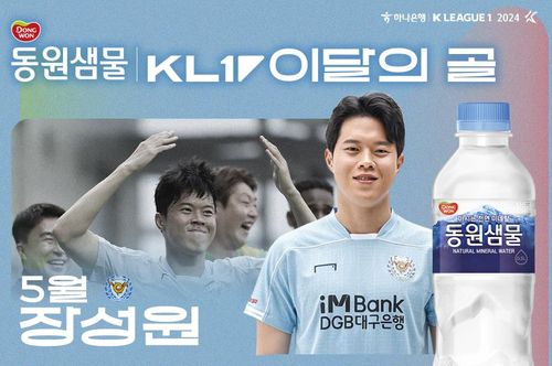 (서울=연합뉴스) 이의진 기자 = 벼락같은 중거리 슛으로 골망을 흔든 프로축구 대구FC의 장성원이 2024시즌 5월 K리그 '마시는 천연 미네랄 동원샘물 이달의 골'을 수상했다.