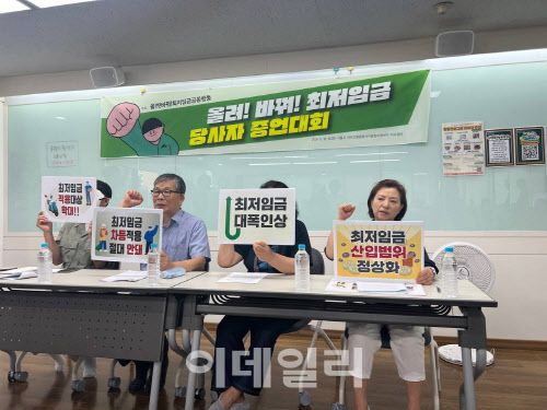 [이데일리 황병서 기자] 내년도 최저임금 결정을 위한 논의가 한창인 가운데 특수고용·비정규직 노동자가 최저임금 인상과 업종별 차등적용 폐지 등을 촉구했다.