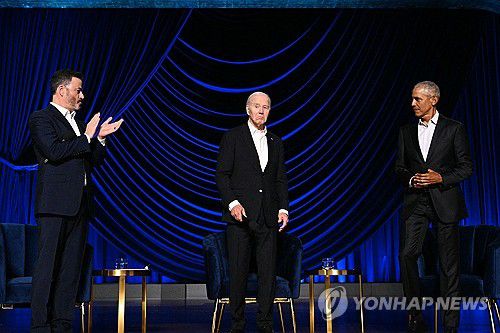 모금행사에 참석한 바이든 미 대통령과 오바마 전 미 대통령 |
