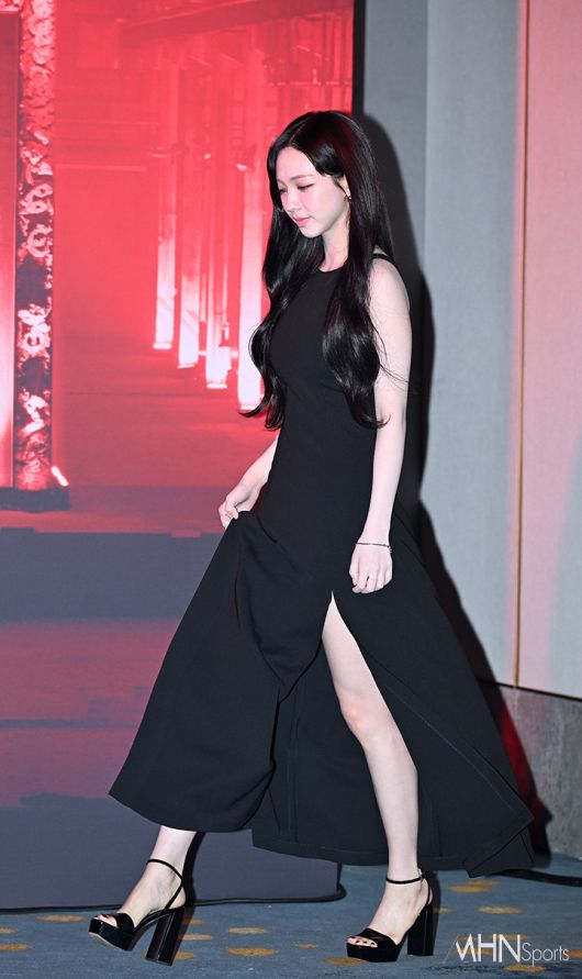 에스파(aespa) 카리나가 참석한 넷플릭스 예능 '미스터리 수사단' 제작발표회가 18일 오전 서울 마포구 호텔 나루 서울 엠갤러리에서 진행됐다. 행사에는 카리나를 비롯해 이용진, 존박, 이은지, 혜리, 김도훈과 정종연 PD가 참석했다.