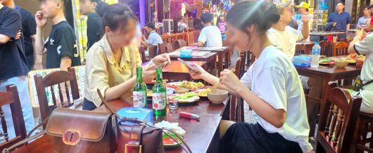 지난 10일 오후 찾은 베트남 하노이 맥주거리. 체감온도 35도에 육박하는 무더위에도 야외 테이블에 앉아 소주를 즐기는 이들을 볼 수 있었다. 거리를 빼곡하게 메운 상점 간판 옆으로는 ‘하노이 맥주거리’, ‘짠내투어’, ‘정말 맛있어요’, ‘저렴한 요리의 정수’ 등 서툰 한국어 네온사인이 즐비하다. 그 아래로 소주 잔을 기울이는 현지인들의 모습이 보였다. 소주 한 병을 나눠 마시는 우리와 달리 각자 1병씩 주문해놓고 먹는 풍경이 이색적이다.