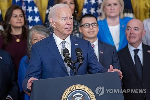 (워싱턴=연합뉴스) 조준형 특파원 = 조 바이든 미국 대통령은 18일(현지시간) 오는 11월 대선 경쟁자인 도널드 트럼프 전 대통령을 "중범죄자"로 칭하면서 트럼프 전 대통령이 미국의 사법 시스템을 공격하고 있다고 비판했다.