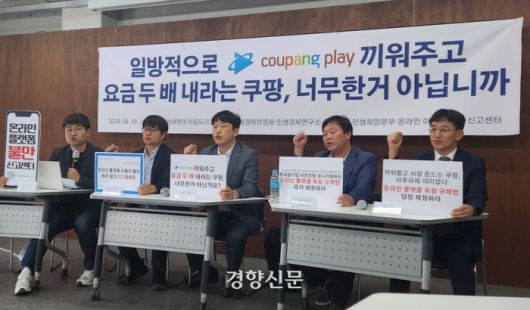 온라인 플랫폼 이용자 불만 신고센터와 참여연대 민생희망본부 등은 신고센터 개소 후 1호 사건으로 쿠팡의 끼워팔기 행위를 공정위에 신고했다고 19일 밝혔다. 이들은 쿠팡이 와우멤버십 가격을 58%가량 올리면서 별개 서비스인 쿠팡플레이·쿠팡이츠 알뜰배달 서비스를 무료 제공한 것이 공정거래법 위반이라고 주장했다.