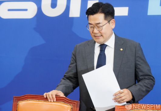 [서울=뉴스핌] 윤창빈 기자 = 박찬대 더불어민주당 원내대표가 19일 오후 서울 여의도 국회에서 열린 국회 원 구성 관련 언론브리핑에 참석하고 있다. 2024.06.19 pangbin@newspim.com