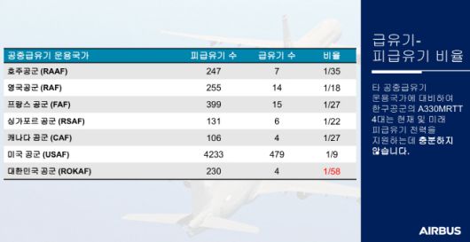 욘셔 수석부사장은 "대한민국 공군 전투기 전력을(약 230대) 최적으로 지원해 국가 방위 및 국제 임무를 위한 지속적인 공군력과 준비태세를 보장하기 위해서는 10대로 구성된 공중급유기 전력이 필요하다"며 "강력한 공중급유 지원을 받는 전투전력은 신속한 타격 능력을 확보하고 시간을 단축할 수 있다"고 설명했다.