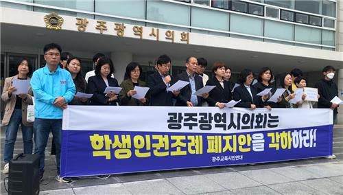 (광주=연합뉴스) 장아름 기자 = 광주 학생인권조례 폐지를 요구하는 주민조례 청구가 요건을 충족해 조만간 시의회가 안건을 상정할 것으로 보인다.