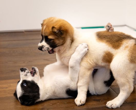 [서울=뉴시스] 조수정 기자 = 윤석열 대통령 부부가 중앙아시아 순방에서 선물로 받은 투르크메니스탄 국견(國犬) 알라바이 두 마리 ‘알라바이(암컷)’와 ‘가라바시(수컷)’가 지난 18일 인천공항에 도착했다. 생후 40일 가량 된 알라바이는 19일 오후 주한 투르크메니스탄대사관에서 한국 정부에 공식 인계돼, 대통령 관저에서 한국 생활을 시작했다. 사진은 관저에 도착한 알라바이와 가라바시. (사진=대통령실 제공) 2024.06.19. photo@newsis.com *재판매 및 DB 금지
