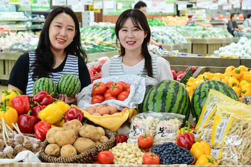 19일 서울 서초구 하나로마트 양재점에서 모델들이 ‘자신만만 더 큰 할인’ 행사를 소개하고 있다. 농협유통·농협하나로유통은 여름철을 맞아 20일부터 전국 64개 하나로마트에서 수박 토마토 등 여름철 농산물을 최대 50% 할인 판매한다. 농협유통 제공 ⓒ 세상을 보는 눈, 세계일보