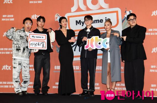 20일 서울 마포구 상암동 스탠포드호텔에서 JTBC 새 예능 'My name is 가브리엘'(마이 네임 이즈 가브리엘, 이하 '가브리엘') 제작발표회가 열렸다. 행세아는 김태호 PD와 이태경 PD, 박명수, 홍진경, 지창욱, 덱스, 가비, MC 데프콘이 참석했다.