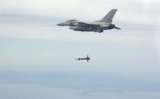 [서울=뉴시스] 김근수 기자 = 美 특수전사령부 AC-130J가 한반도에 전개한 가운데 20일 우리 공군의 KF-16 전투기가 GBU-12 정밀유도폭탄을 투하하고 있다. (사진= 대한민국 공군 제공) 2024.06.20. photo@newsis.com *재판매 및 DB 금지
