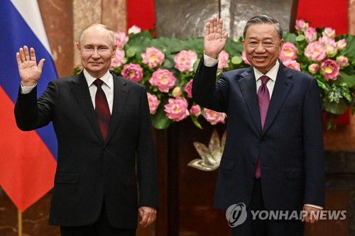 (하노이=연합뉴스) 박진형 특파원 = 블라디미르 푸틴 러시아 대통령의 베트남 방문으로 베트남은 최근 9개월 동안 조 바이든 미국 대통령과 시진핑 중국 국가주석까지 세계 3대 강대국의 최고 지도자를 불러들여 관계 강화에 합의했다.