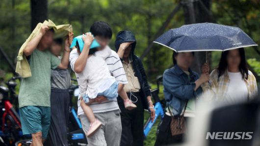 소나기에 의한 예상 강수량은 5~10㎜고, 강수 확률은 60%다.