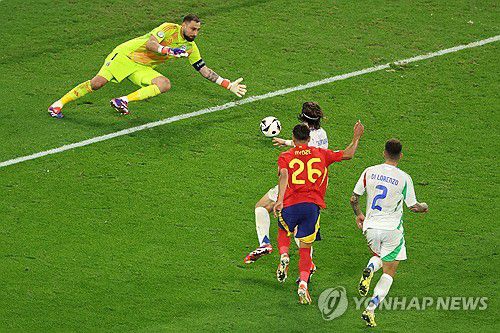 전반 24분 2007년생 스페인 신성 야말이 드리블 돌파를 통해 이탈리아 선수 3명을 제치면서 슈팅 장면을 만들었다. 박스 안까지 들어온 야말은 모라타에게 공을 내줬고, 모라타가 페널티 오른쪽 지역에서 가까운 포스트를 향해 슈팅을 날렸으나 이번에도 돈나룸마 골키퍼에 막혔다.