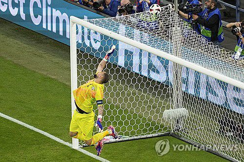 이후 이어진 스페인의 코너킥 상황에선 후반전 시작과 동시에 프라테시를 대시핸 교체로 들어온 안드레아 캄비아소가 추가 실점을 막았다. 캄비아소는 미리 골대 앞에 위치하면서 스페인 센터백 르노르망의 헤더 슈팅이 골라인을 넘기 전에 공을 걷어내는데 성공했다.