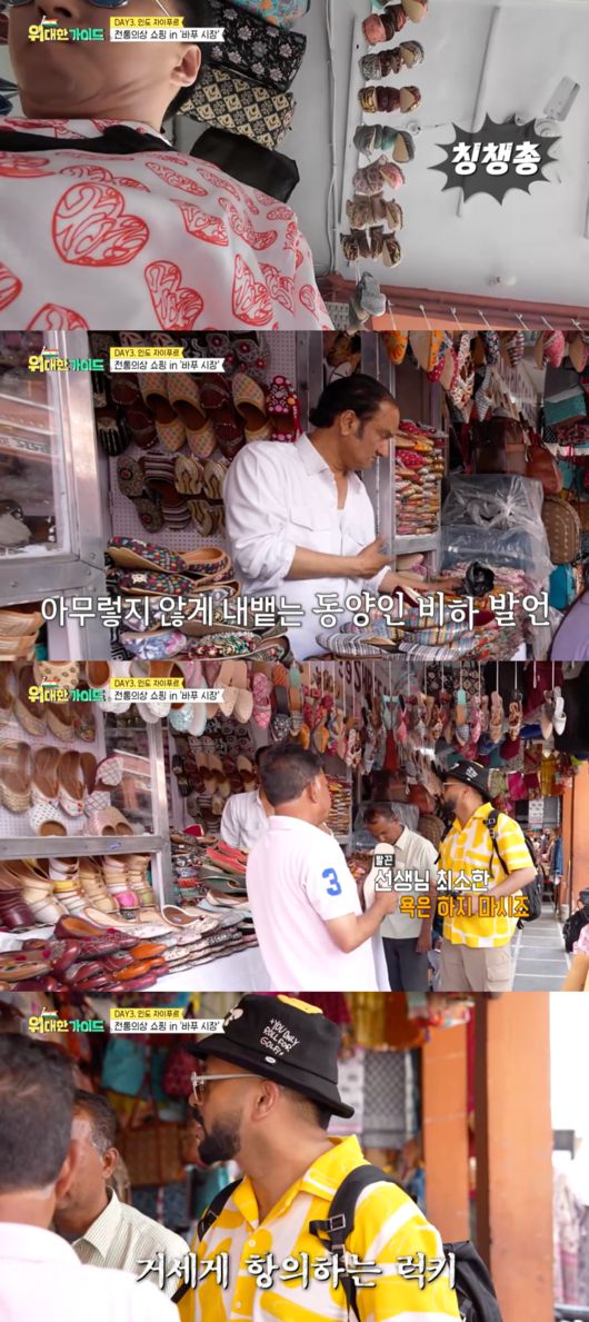 앞서 지난 10일 방송된 MBC에브리원 ‘위대한 가이드’에서 박명수가 럭키와 인도 시장에서 전통의상을 쇼핑했을 때 한 신발가게에서 직원이 호객행위를 하다 박명수에게 ‘코리아 칭챙총’이라고 비하 발언을 했다.