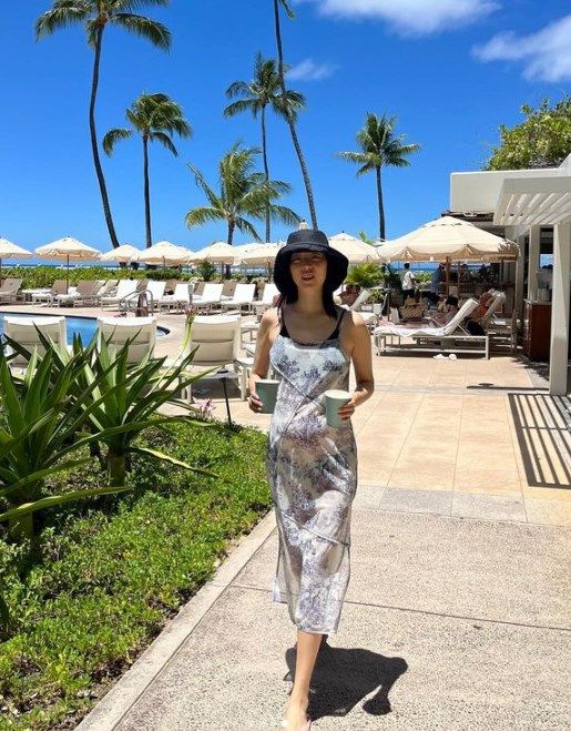 공개된 사진 속 이연희는 원피스를 입고 햇빛을 만끽하고 있다. 임신 중인 이연희는 민낯으로 청순한 미모를 뽐내고 있다. 가느다란 팔다리와 비교되는 D라인이 눈길을 끌었다.
