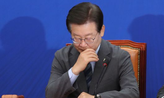 이재명 더불어민주당 대표가 21일 국회에서 열린 최고위원회의에 참석하고 있다. /이덕훈 기자 |