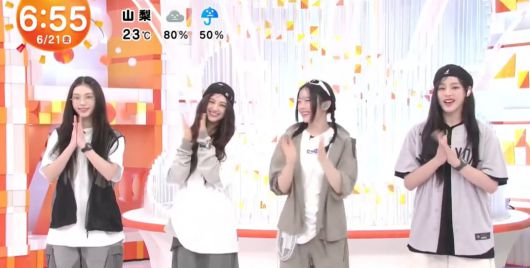 뉴진스는 이날 오후 TV 아사히 '뮤직 스테이션, 22일 니혼TV 'with MUSIC', 24일 TBS 'CDTV 라이브! 라이브!', 내달 3일 후지TV 'FNS 가요제', 내달 13일 TBS '음악의 날 2024' 등 현지 대표 음악방송 프로그램에서 신곡 무대를 이어가며 현지 활동에 박차를 가한다.