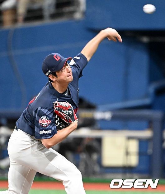 [OSEN=고척, 이대선 기자] 23일 오후 서울 고척스카이돔에서 ‘2024 신한 SOL Bank KBO리그’ 키움 히어로즈와 롯데 자이언츠의 경기가 열렸다. 키움은 이종민, 롯데는 정현수를 선발로 내세웠다. 7회말 무사에서 롯데 진해수가 역투하고 있다. 2024.06.23 /sunday@osen.co.kr