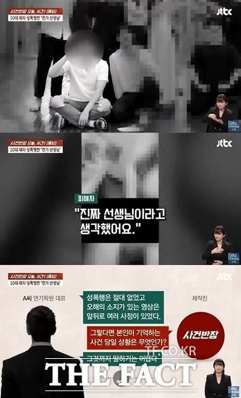 10대 제자를 성폭행한 연기학원 대표가 유명 배우로 알려져 논란이 일고 있다. JTBC 사건반장 캡쳐. /뉴시스 |
